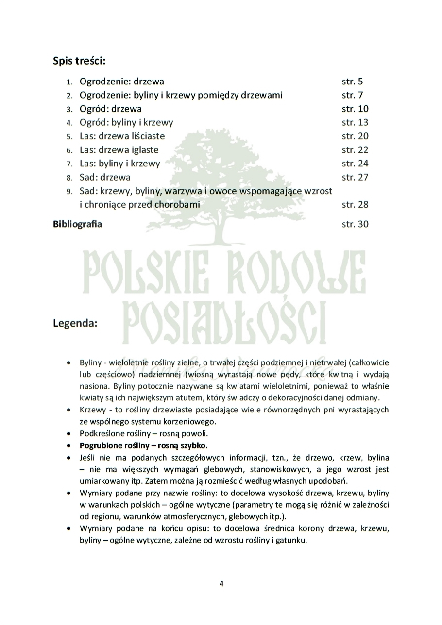 Katalog drzew, krzewów, bylin i roślin jednorocznych jest przykładową listą około 340 różnych odmian roślin mogących znaleźć się na Rodowej Posiadłości na 1 ha ziemi, choć wykorzystanie go może być wszechstronne. Powstał w oparciu o fachową i bogatą literaturę oraz własne obserwacje i doświadczenia.