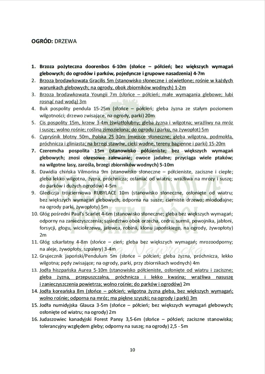 Kryteria dotyczące doboru roślin na Rodową Posiadłość są następujące: